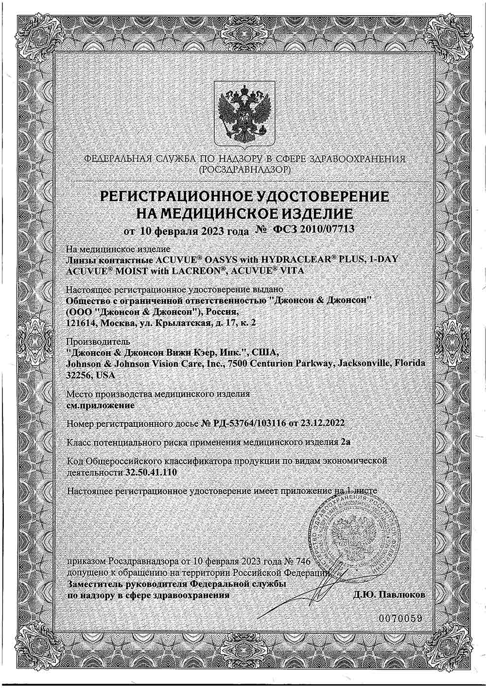 Рады представить Вам контактные линзы Acuvue Oasys with Hydraclear Plus (Акувью Оазис виз Гидроклиа Плюс). Они были разработаны опытными специалистами известного американского бренда Acuvue, являющегося дочерней компанией Johnson & Johnson, которая давно не нуждается в долгом представлении. Данные оптические изделия могут использоваться на протяжении 14 дней, при этом производитель допускает различные режимы ношения, среди которых дневной, гибкий, пролонгированный. Как уверяют разработчики представленной продукции, данные контактные линзы имеют высокую кислородопроницаемость, а значит в них Ваши глаза смогут полноценно «дышать». Благодаря уникальной особенности структуры эти средства коррекции позволяют пропускать к роговой оболочке нужное число питательных компонентов, которые содержатся в кислороде, даже в то время, когда Вы спите. Помимо прочего, риск покраснения глаз сведен к минимуму, за счет чего становится возможным сохранение комфорта при ношении на протяжении всего периода использования.