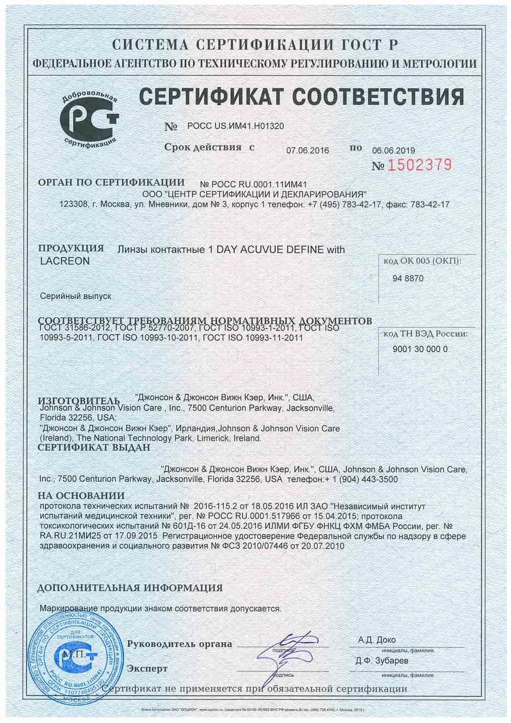 Линзы 1-Day Acuvue Define («Ван Дэй Акувью Дефайн») — однодневные контактные линзы производителя Johnson & Johnson, который с середины прошлого века поставляет качественные оптические изделия почти во все страны мира. Контактные линзы Acuvue пользуются огромной популярностью уже в течение долгих лет, они получили массу положительных отзывов.