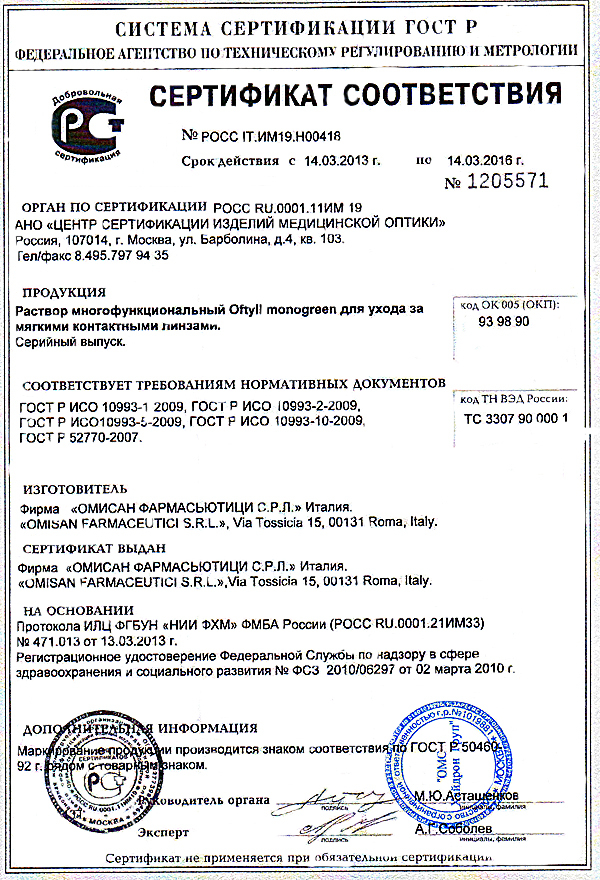 Раствор для линз Oftyll Monogreen 100 мл