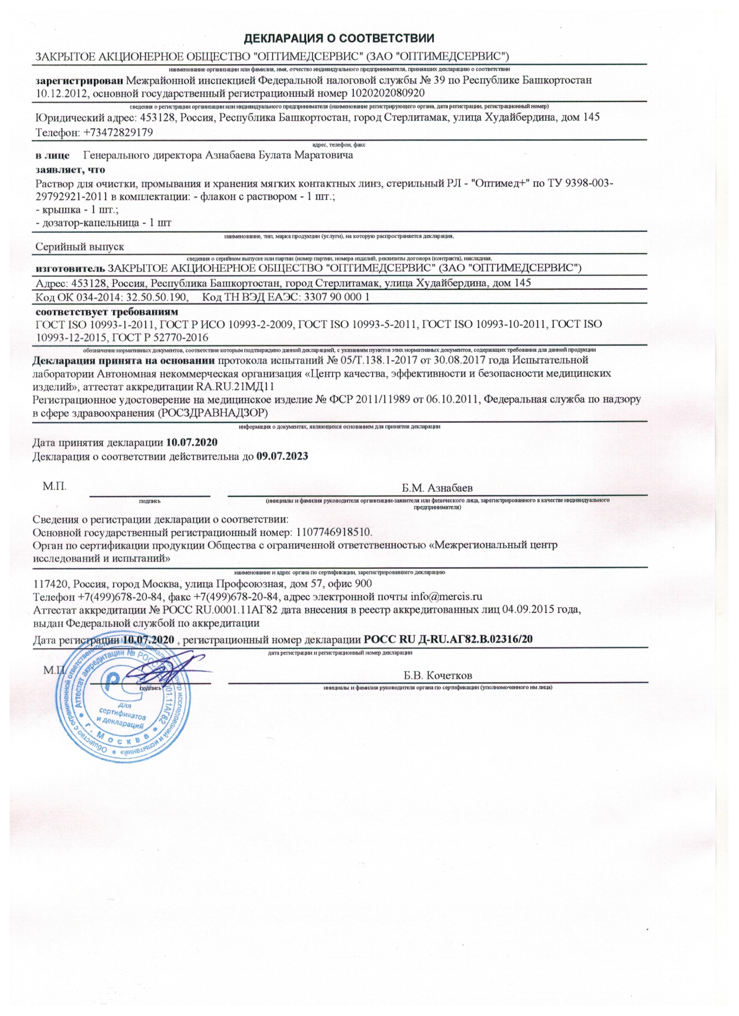 Раствор для линз Optimed Plus 125 мл